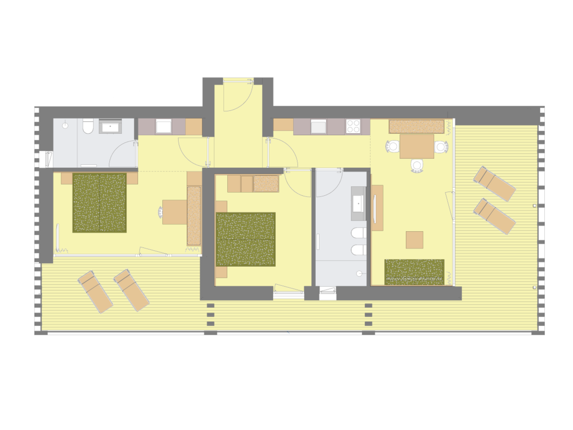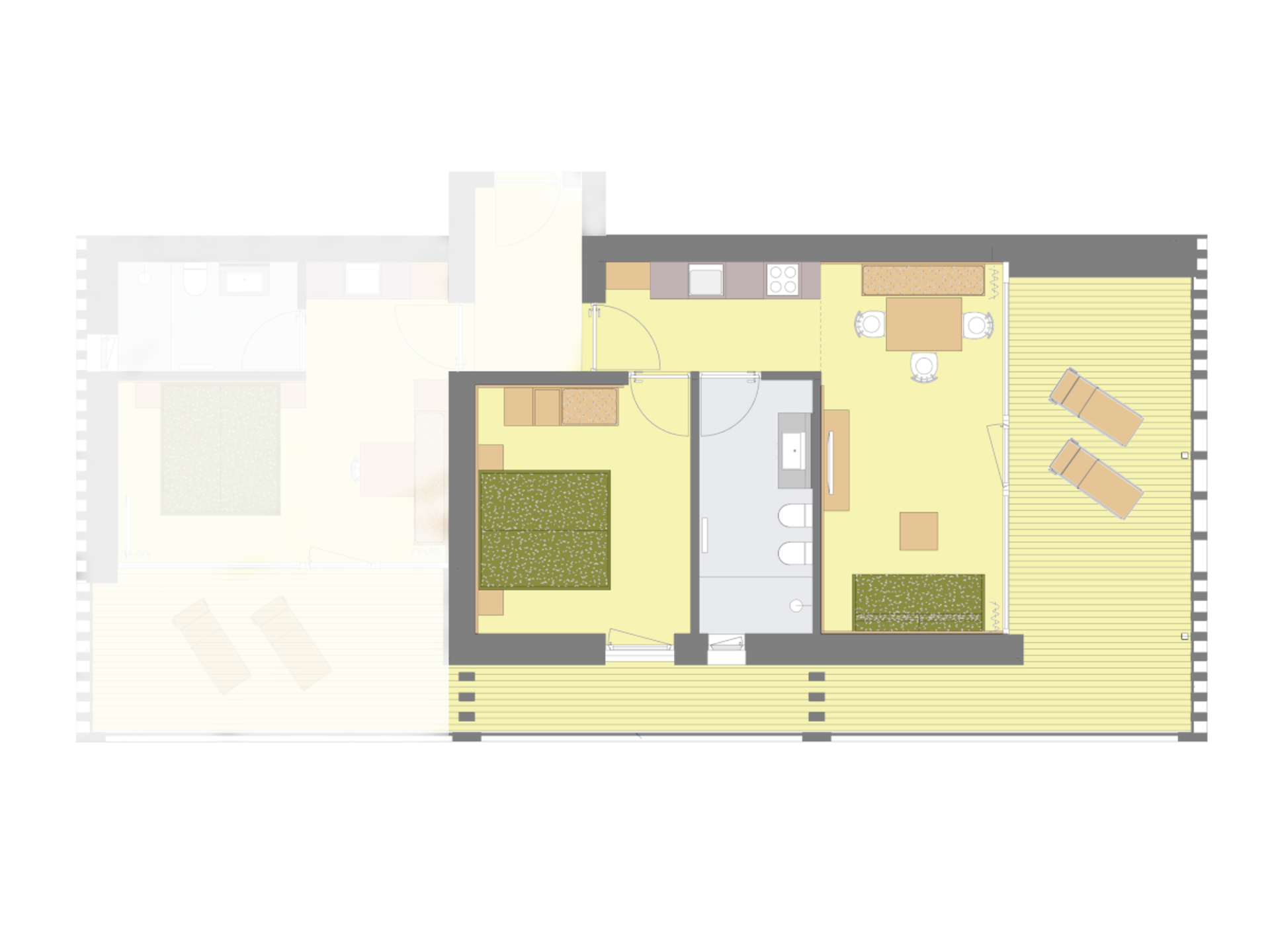 Sie benötigen mehr Platz? ⇒ Jedes Apartment kann mit einem zusätzlichen, separaten Zimmer mit eigenem Bad gebucht werden.