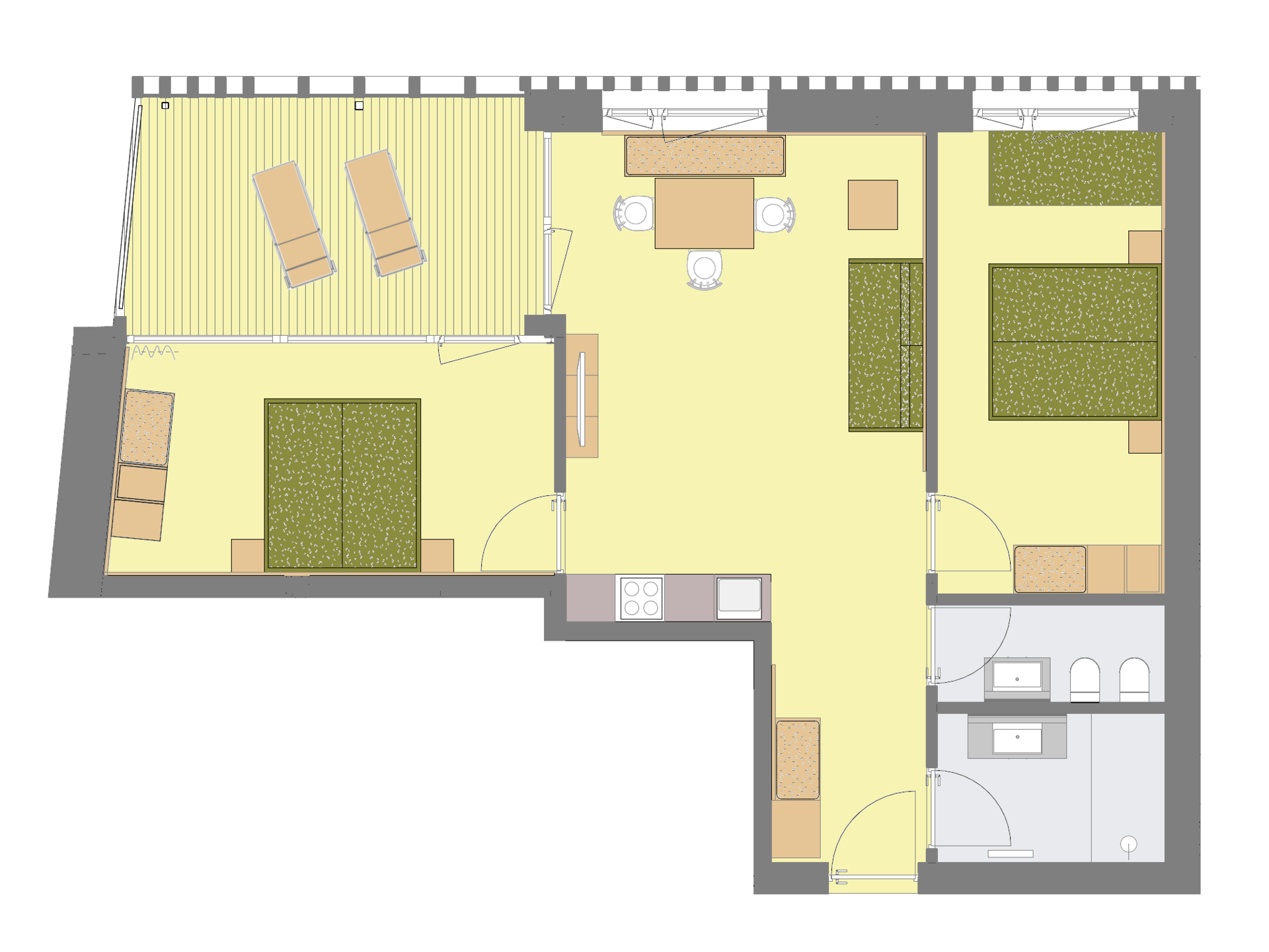 Unser größtes Apartment bietet mit zwei geräumigen Schlafzimmern und zwei Bädern den idealen Urlaubsort für Familien. Auch Paare, welche zusammen den Urlaub genießen und doch Ihre Privatsphäre möchten, finden hier Ihr perfektes Urlaubszuhause.