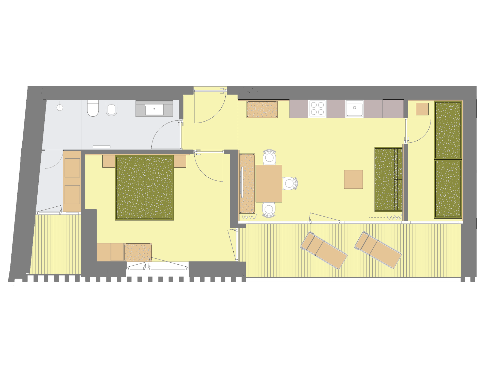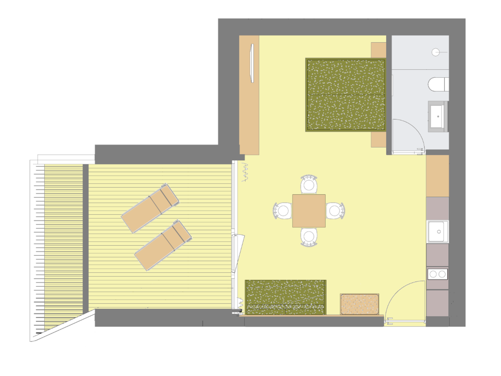 40 m² Wohnfläche + 16 m² Dachterrasse