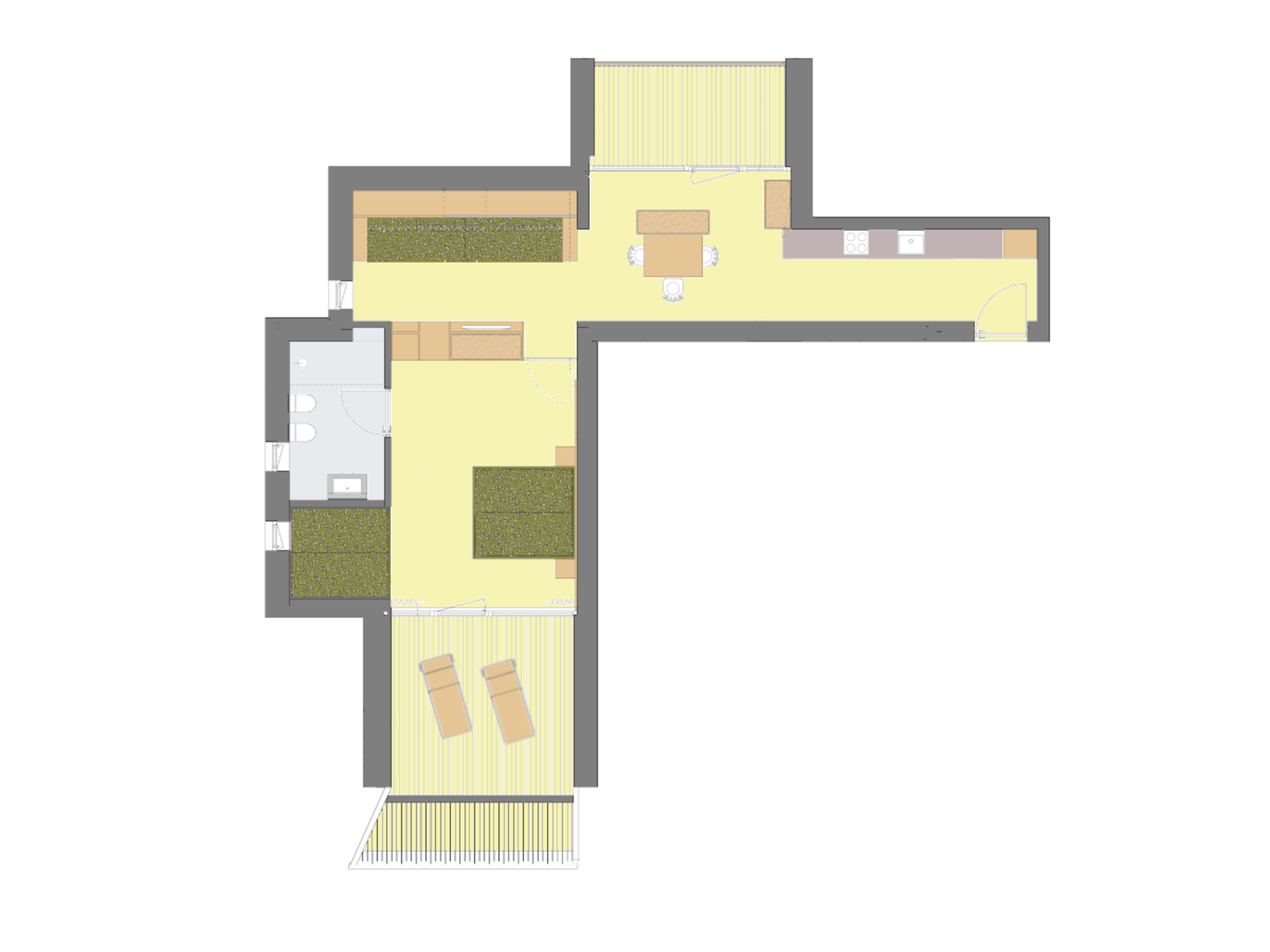 - Großzügige Dachterrasse mit Sitzgelegenheit und Sonnenliegen
